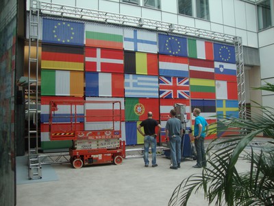 På plan tre i Europaparlamentet pågår förberedelserna inför firandet av Europadagen på onsdag för fullt.