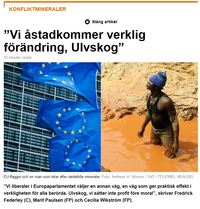 Går vårt förslag igenom i plenum onsdagen den 20 maj så innebär det att importörerna kommer att tvingas redovisa att brytningen av deras mineraler inte finansierar väpnade konflikter.