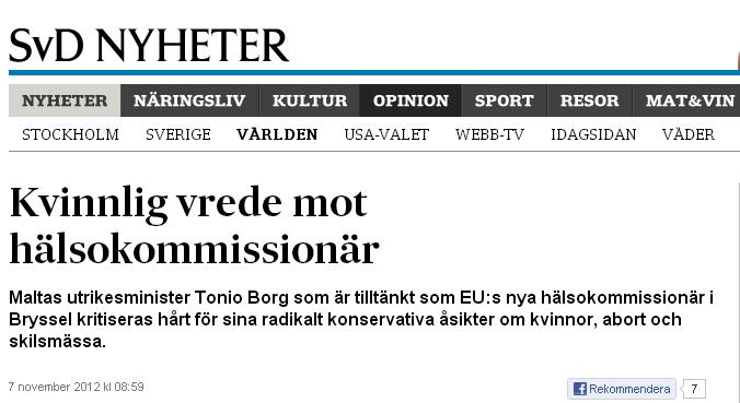 På tisdag frågas Maltas utrikesminister Tonio Borges, som nominerats till EU:s nya hälsokommissionär ut i Europaparlamentet. Redan nu kritiseras han hårt för sina radikalt konservativa åsikter om kvinnor, abort och skilsmässa.