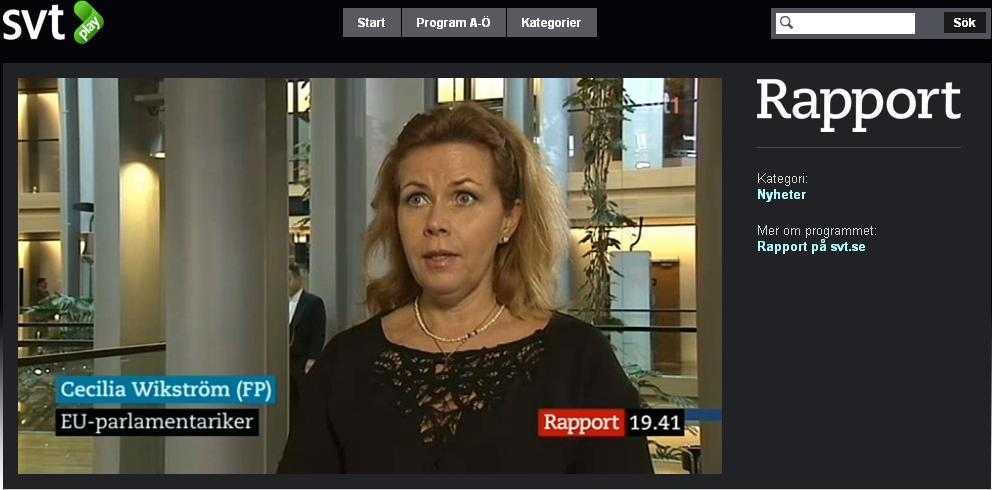 För er som missade mig i Rapport i går kring det beklagliga godkännandet av EU:s nye hälsokommissionär kommer här en länk. Sändningen ligger bara uppe i en vecka, dock.