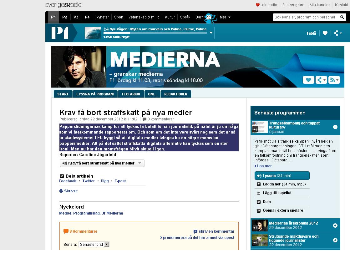 Intervjuad i SR Medierna om straffskatten på digitala medier