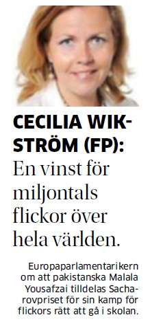 Citerad kring varför det var rätt att tilldela Malala Yousafzai Sacharovpriset, EU:s pris för tankefrihet i flera medier. Förutom GP:s citat och artikeln i DN fångade danska och norska tidningar så som Aftenbladet och ABCNyheter, även upp det.