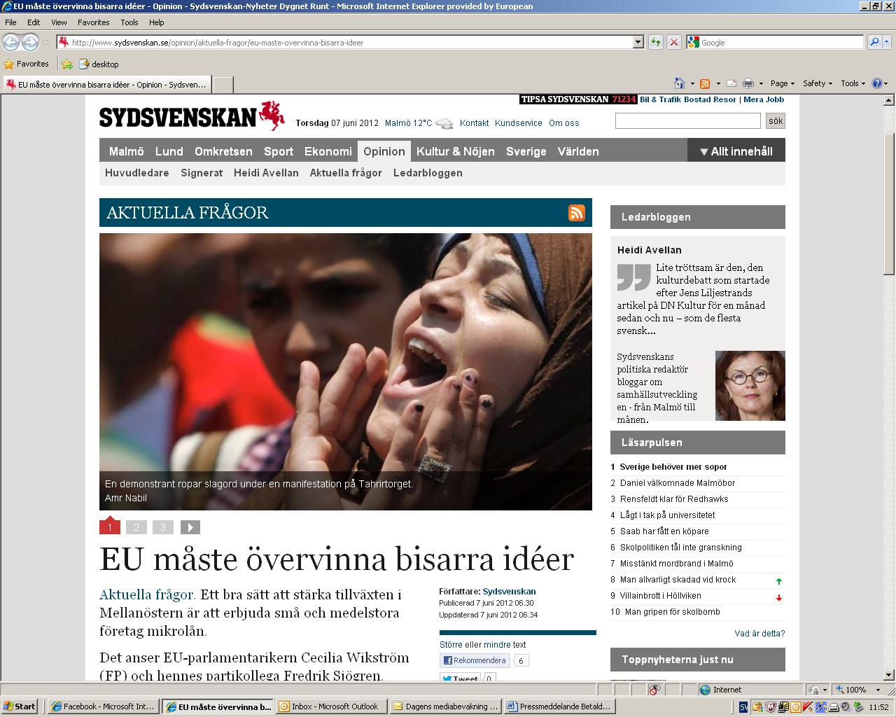 I dag skriver jag och min partikollega Fredrik Sjögren en debattartikel i Sydsvenskan om hur EU måste stötta demokratiutvecklingen i Nordafrika. Läs artikeln som även hittas här!