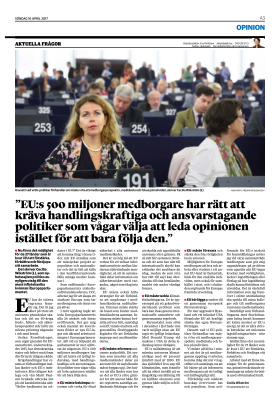 Samtidigt som förhandlingarna med Storbritannien kring brexit kommer att kräva mycket av EU:s energi, är det av allra största betydelse att unionens lagstiftningsarbete inte stannar upp. Istället finns det nu möjlighet för de 27 länder som är kvar i EU att förstärka, förbättra och fördjupa sitt samarbete. Arbetet med att finna lösningar för de gemensamma, gränsöverskridande utmaningarna måste fortsätta med oförminskad kraft.