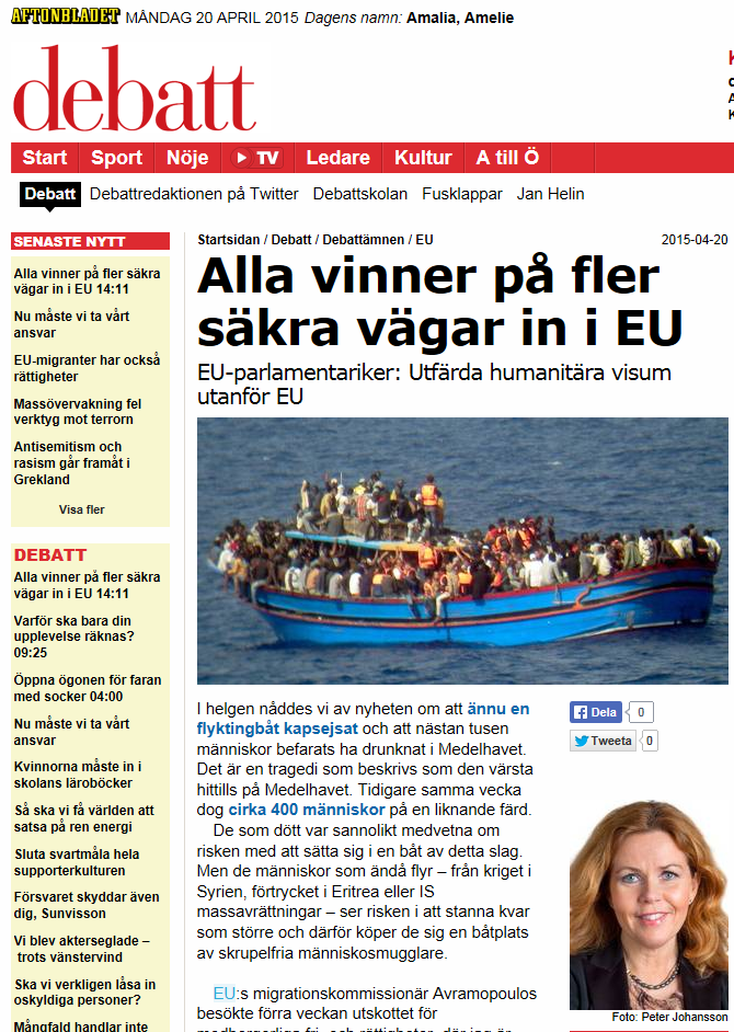 I juli 2013 var jag först ut med att lyfta frågan om att skapa lagliga och säkra vägar till EU så att flyktingar inte behöver sätta sina liv i händerna på traffickers som packar människorna i ofta överfulla sjöodugliga båtar.