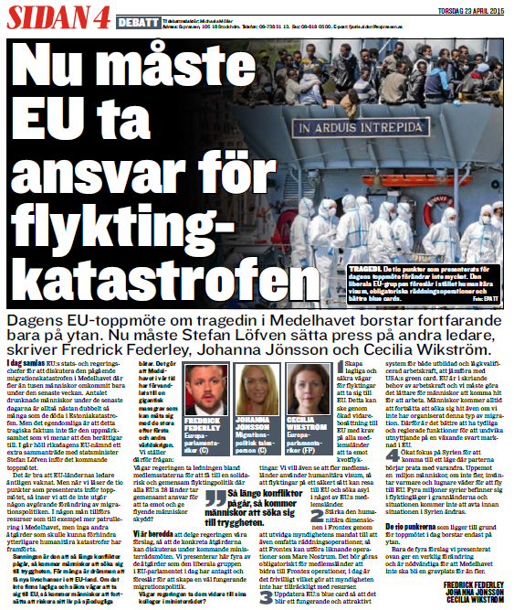 Debattartikel i Expressen med Federley: Nu måste EU ta ansvar för katastrofen
