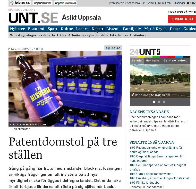 Debattartikel i UNT: Patentdomstol på tre ställen