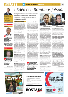 Debattartikel i UNT: I Edén och Brantings fotspår
