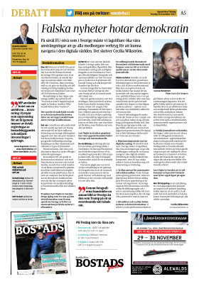 Debattartikel i UNT: Falska nyheter hotar demokratin