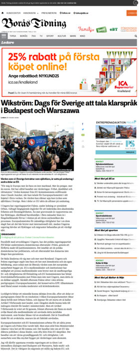 Gästkrönika i BT: ”Dags för Sverige att tala klarspråk i Budapest och Warszawa”