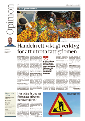 Gästkrönika i Länstidningen Södertälje: Handeln ett viktigt verktyg för att utrota fattigdomen