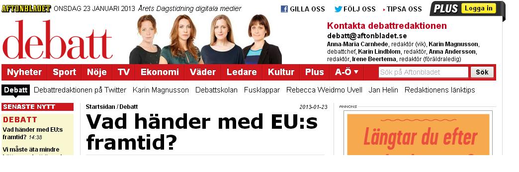 Helt fel, Sverige tjänar mycket på EU-samarbetet, framför allt genom den inre marknaden. Om varje land börjar omförhandla så brister samarbetet och helheten går förlorad. Vi betalar ett mkt högt politiskt pris om vi går ur. Någon måste ju köpa svenskt trä, malm, lastbilar, volvo och svenska företags tjänster. Vi får tillbaka massor av pengar genom vårt medlemskap. Tex, när broar, höghus och annan infrastruktur byggs i länder som Litauen, Slovakien, Tjeckien och Rumänien, så behövs svenska resurser, tex malm. Dessa pengar som kommer tillbaka till svenska företag tas aldrig med i någon beräkning. |