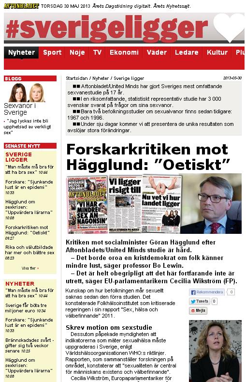 I kväll klockan 19.30 kan ni se mig i Aftonbladet TV med anledning av Aftonbladets stora undersökning av svenskars sexualvanor.