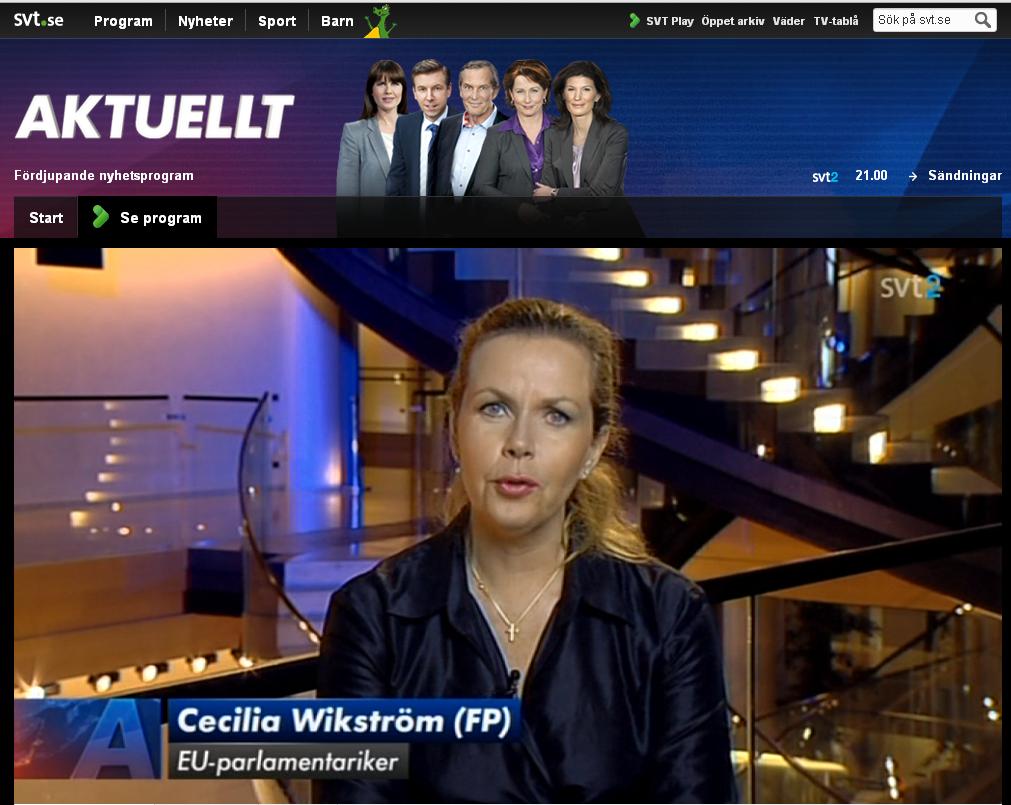 Live-intervjun på länk från Europaparlamentet i Strasbourg i gårdagens Aktuellt gick bra. Det var lite nervöst innan, dock, det är inte varje dag jag gör något sådant. I sex dagar framåt kan ni se sändningen. Jag dyker upp 20 minuter in i programmet.