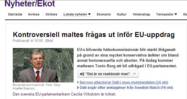 Inslag i SR: Kontroversiell maltes frågas ut inför EU-uppdrag