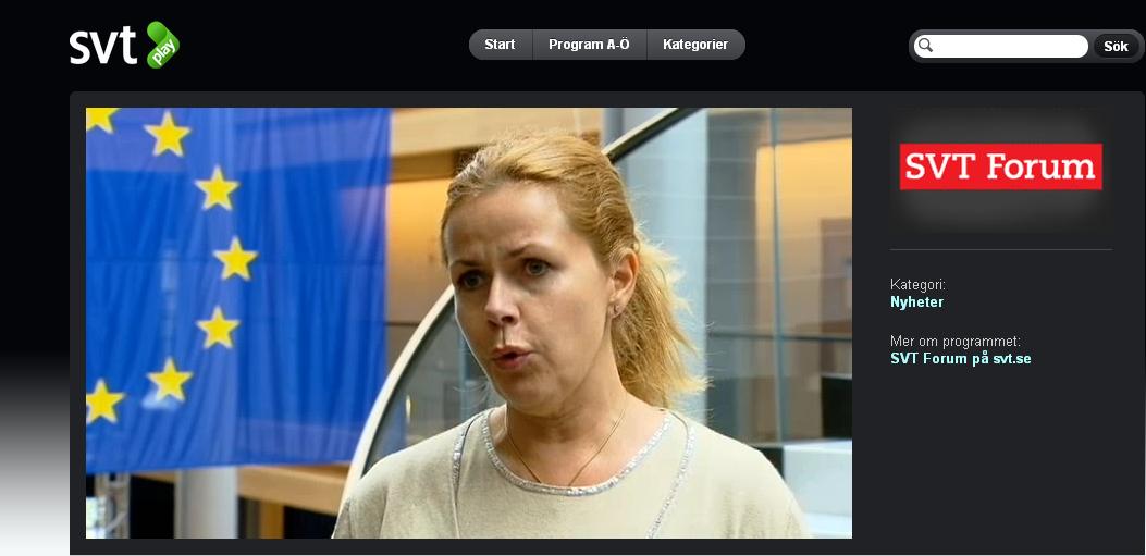 Under förra Strasbourg-sessionen intervjuades jag av Svt Forums reporter Helén Nyman och programmet sändes i Svt2 i måndags. Det är inte ofta man får 7 minuter och 44 sekunder i tv-rutan. Äntligen fick jag prata till punkt! Se gärna intervjun här och hör i vilket sammanhang jag tycker att ”Svenska medborgare är diskriminerade jämfört med andra EU-länder”: