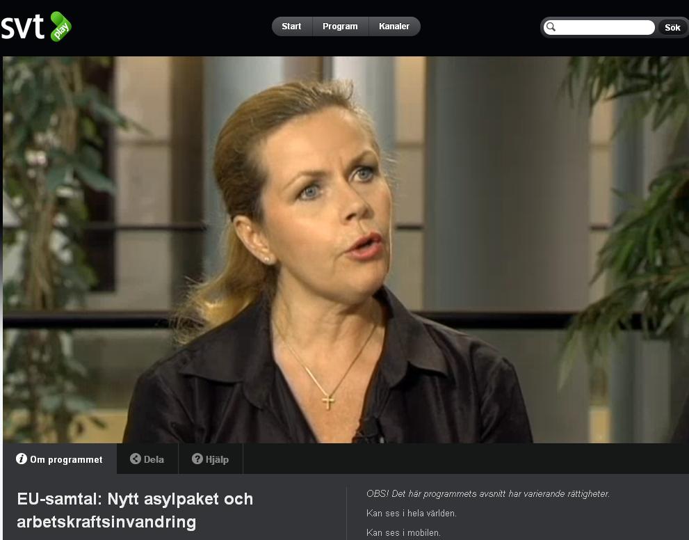 I förra veckan medverkade jag i SVT2 program ”Samtal i Europa” där jag diskuterade asylpaketet som äntligen träder i kraft och den nya arbetskraftsinvandringsrapporten som jag precis börjat arbeta med. Ni som är intresserade kan se programmet här.