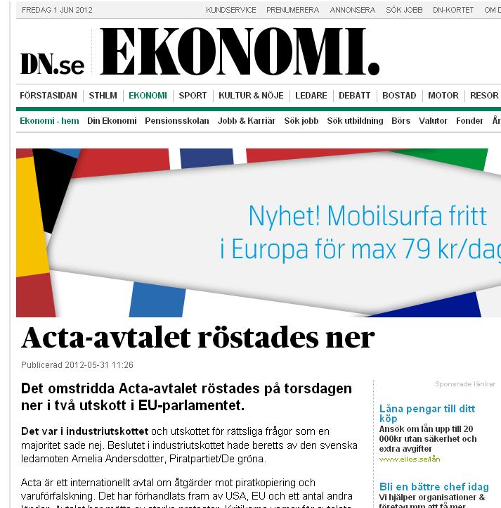 Intervjuad av Svt, DN och Europaportalen: ”Acta är dött”