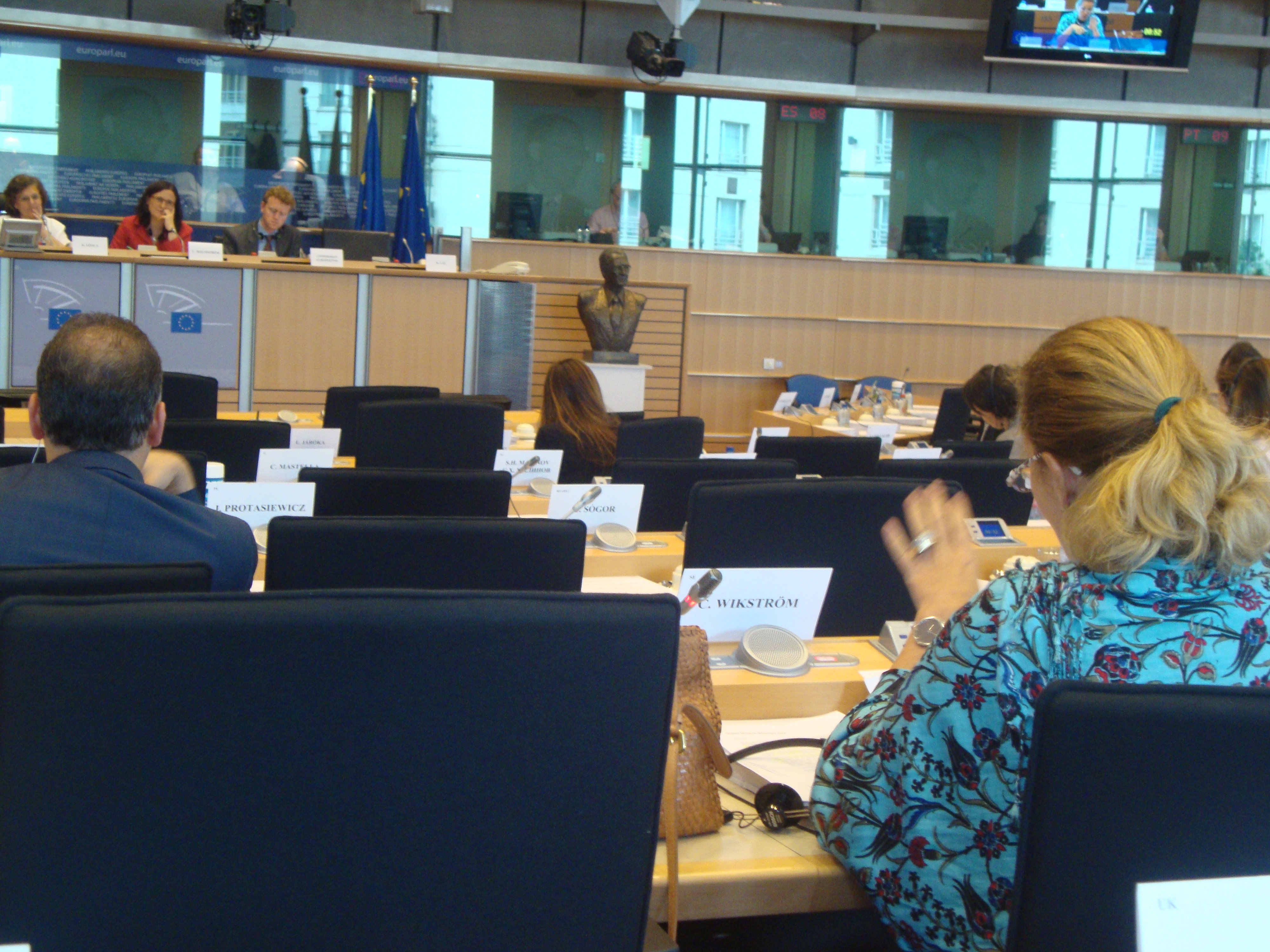 …i utskottet för mänskliga fri- och rättigheter frågas ansvariga kommissionär, Sveriges egna Malmström, ut av mig och andra ledamöter om EU-kommissionens position i aktuellafrågor.