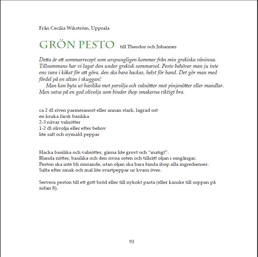 Här kommer receptet till min andra specialité, nämligen grön pesto. Receptet är publicerat i kokboken Koka soppa på en spik som släpptes i våras.