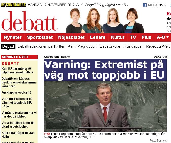 Debatten kring den ultrakonservative Tonio Borg som nominerats till EU:s näste hälsominister fortsätter. Läs gärna min debattartikel kring honom som publiceras i Aftonbladet i dag.