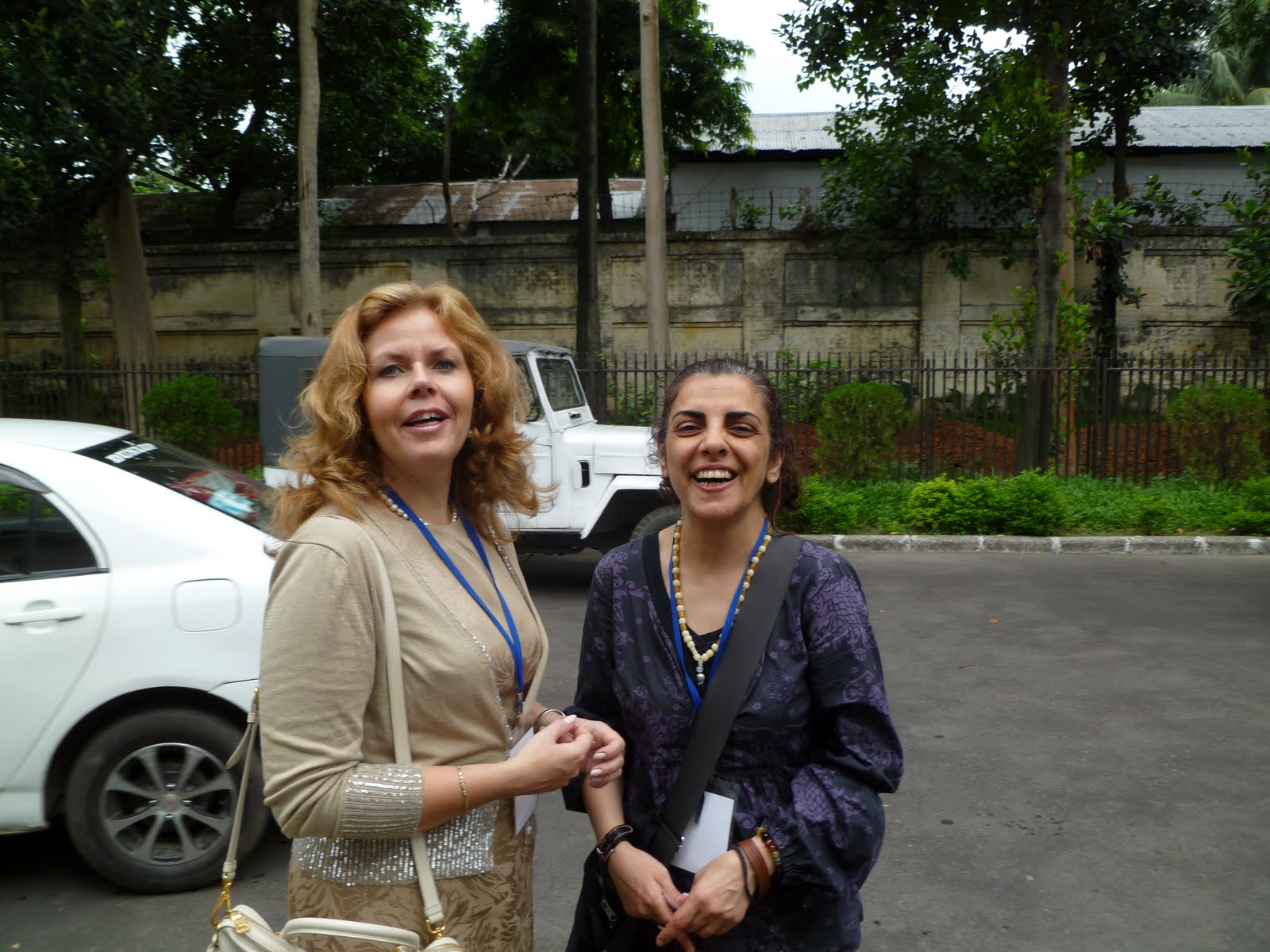 Cecilia and Iranian human rights activist Parvin Ardalan outside the Osmani Memorial Auditorium