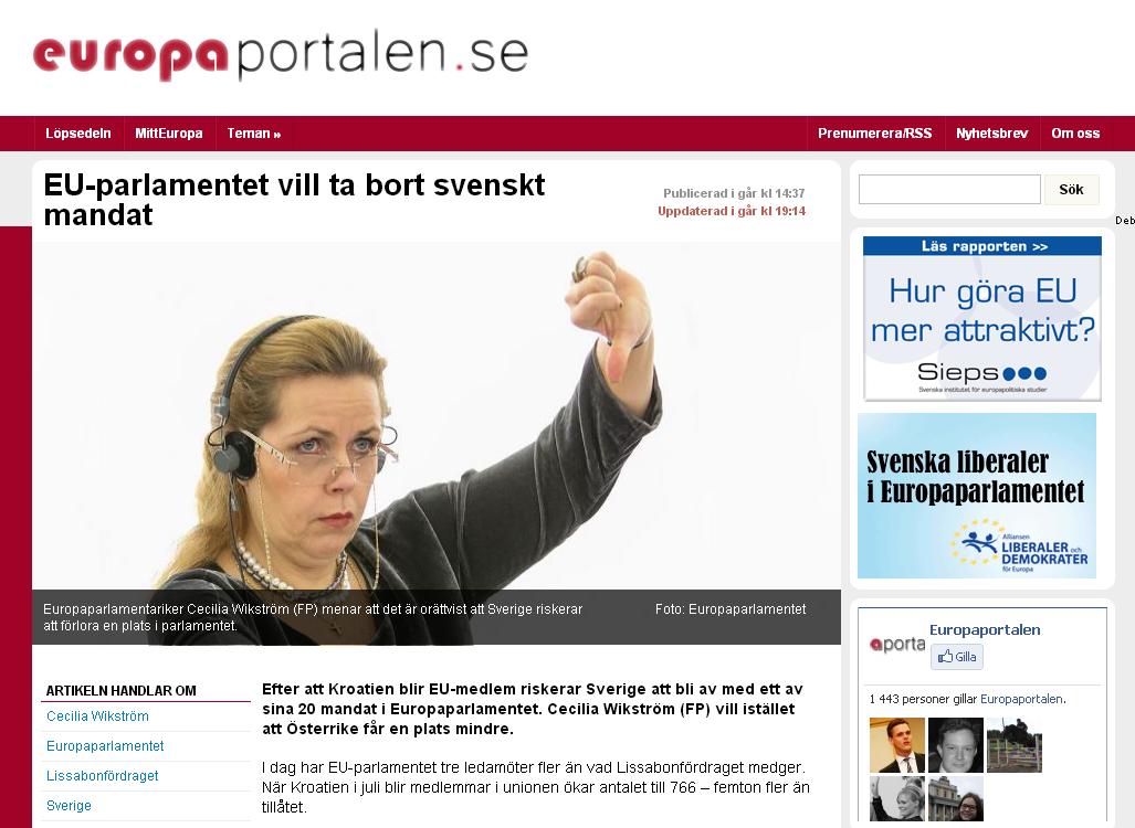 Läs gärna DN:s artikel ”Sverige kan få behålla alla platser i EU-parlamentet” och Europaportalens artikel ”EU-parlamentet vill ta bort svenskt mandat”